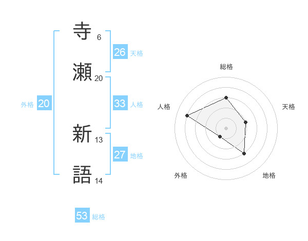 寺瀬 新語さんを姓名の画数から五運を鑑定