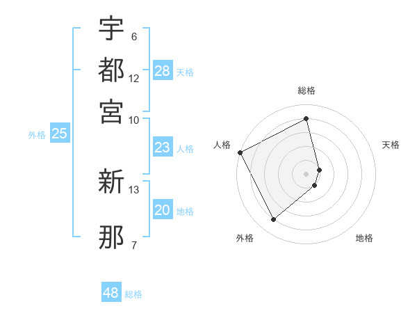 宇都宮 新那さんの外格は25画の4点!