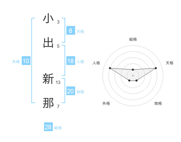 小出 新那さんの天格は8画の4点!