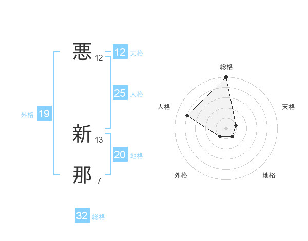 悪 新那さんの外格は19画の1点!