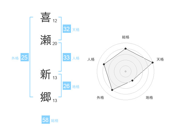 喜瀬 新郷さんの総格は58画の4点!