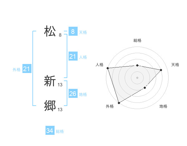 松 新郷さんの総格は34画の2点!