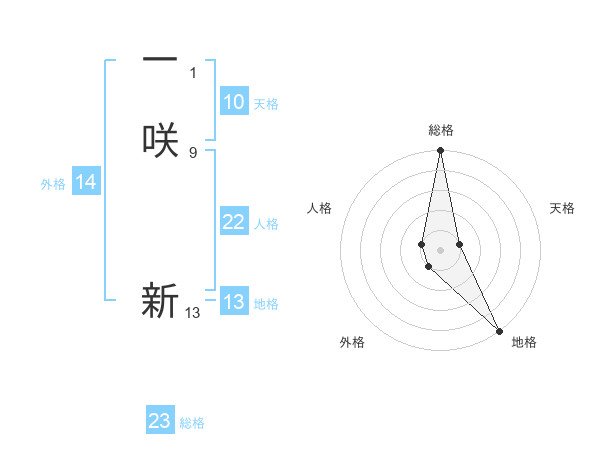一咲 新さんの総格は23画の5点!