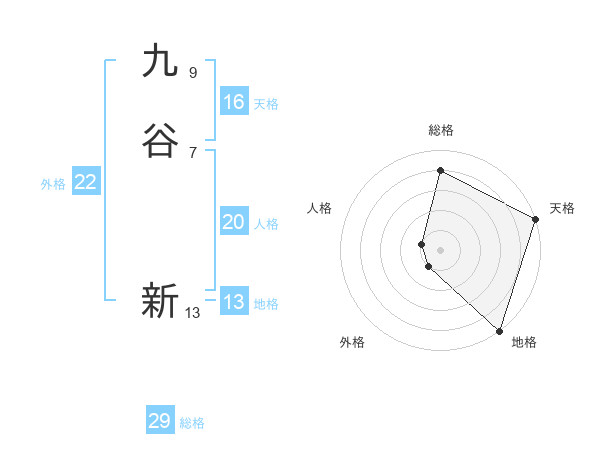 九谷 新さんの総格は29画の4点!