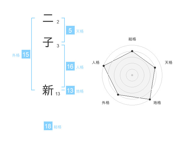 二子 新さんの地格は13画の5点!