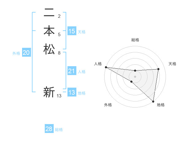 二本松 新さんの総格は28画の1点!