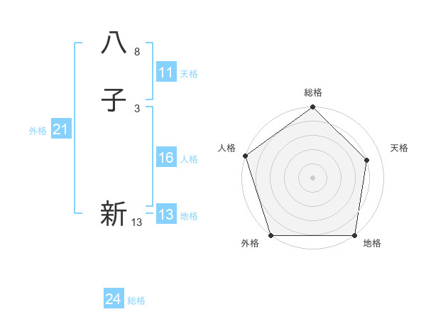八子 新さんの外格は21画の5点!