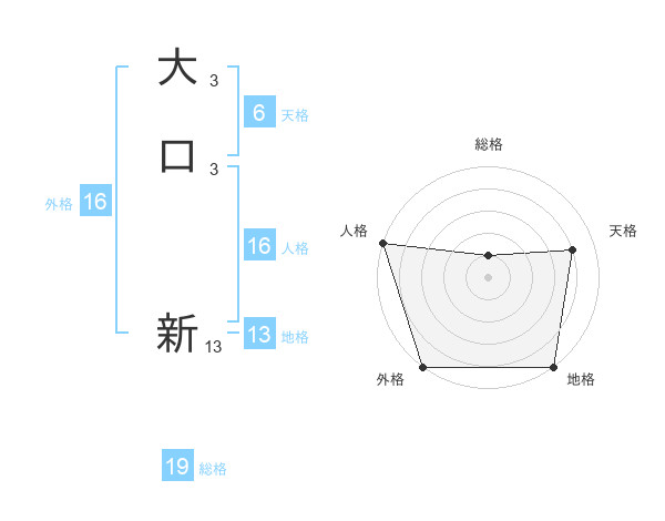 大口 新さんの外格は16画の5点!