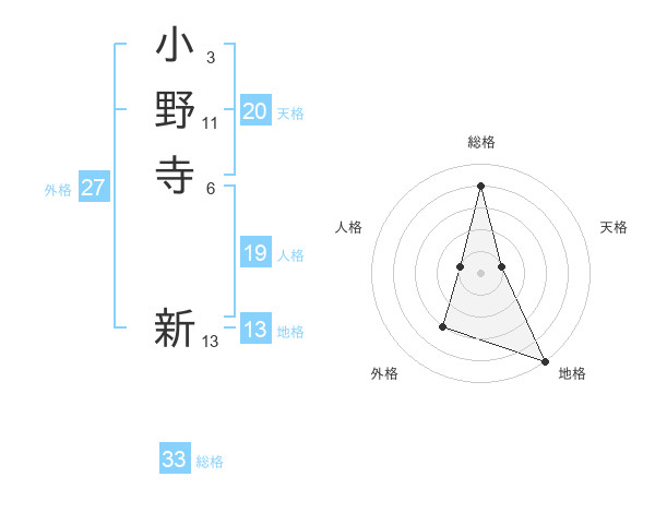 小野寺 新さんの外格は27画の3点!