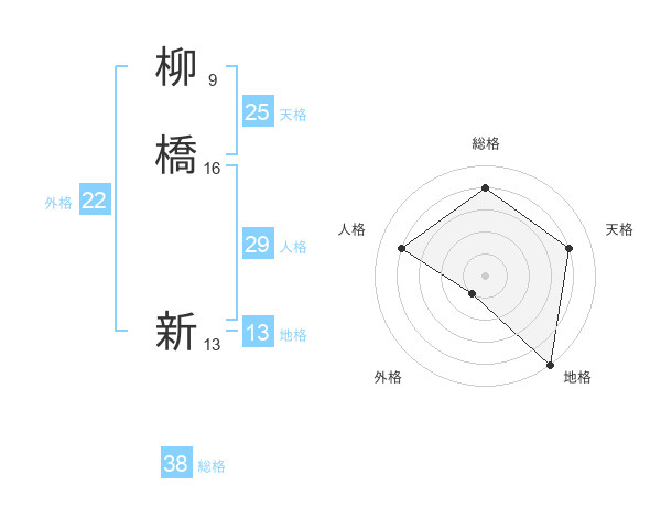 柳橋 新さんの総格は38画の4点!