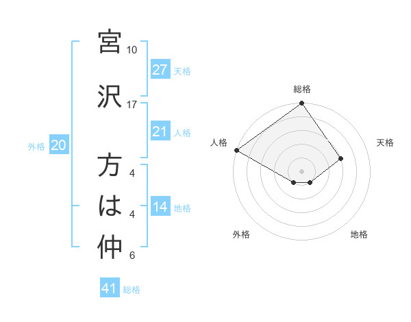 宮沢 方は仲さんを姓名の画数から五運を鑑定