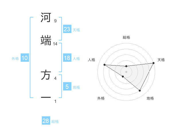 河端 方一さんの天格は23画の5点!