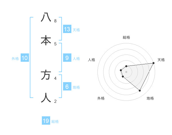 八本 方人さんの天格は13画の5点