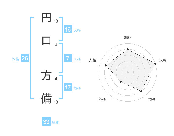 円口 方備さんの総格は33画の4点!