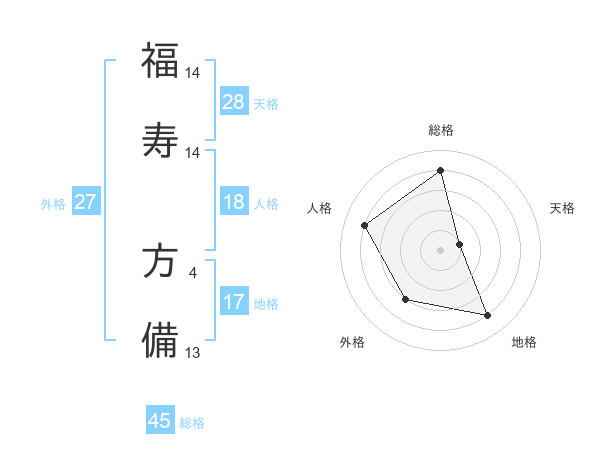 福寿 方備さんの総格は45画の4点!