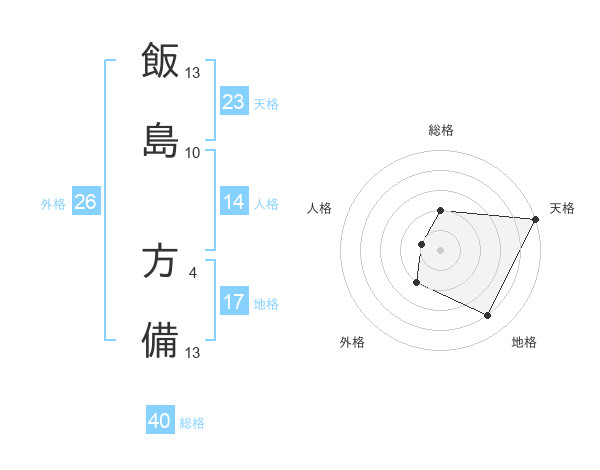 飯島 方備さんの天格は23画の5点!
