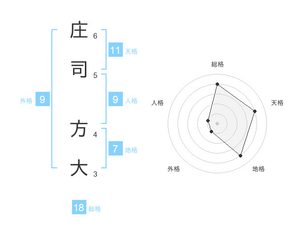 庄司 方大さんの総格は18画の4点!