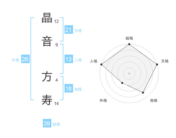 晶音 方寿さんの総格は39画の5点!