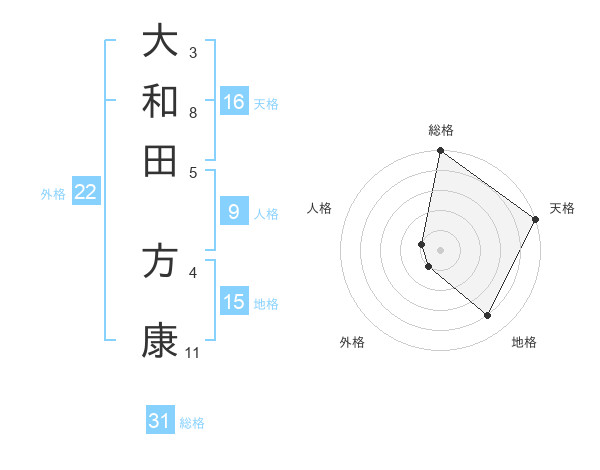 大和田 方康さんの総格は31画の5点!