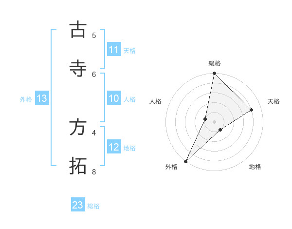 古寺 方拓さんを姓名の画数から五運を鑑定