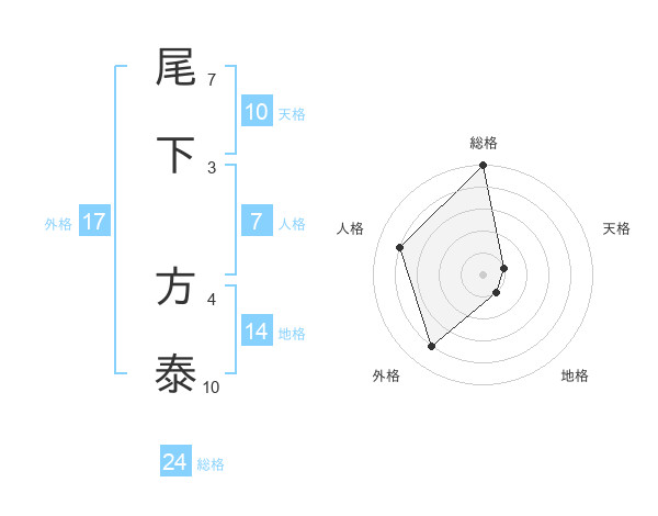 尾下 方泰さんの総格は24画の5点!
