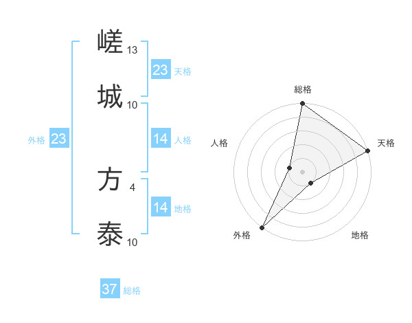 嵯城 方泰さんの総格は37画の5点!
