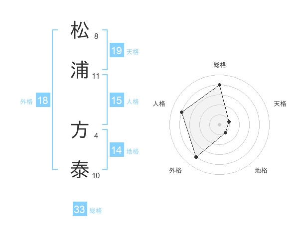 松浦 方泰さんを姓名の画数から五運を鑑定