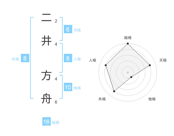二井 方舟さんの総格は16画の5点!