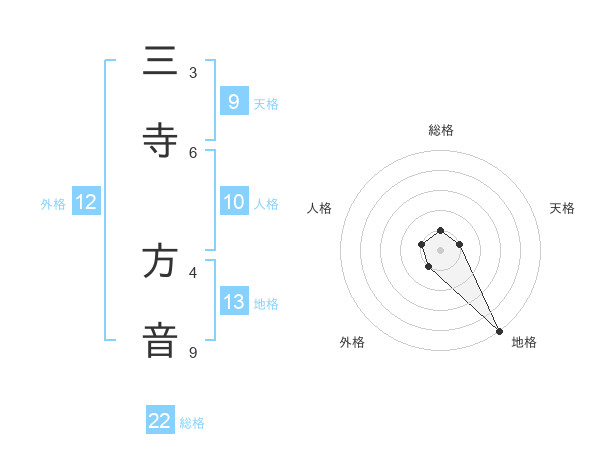 三寺 方音さんの地格は13画の5点!