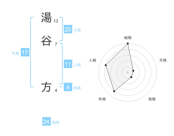 湯谷 方さんの総格は24画の5点!