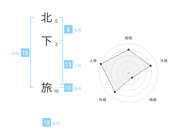 北下 旅さんの総格は18画の4点!