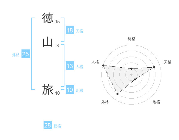 徳山 旅さんの総格は28画の1点!