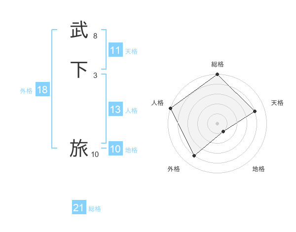 武下 旅さんの総格は21画の5点!