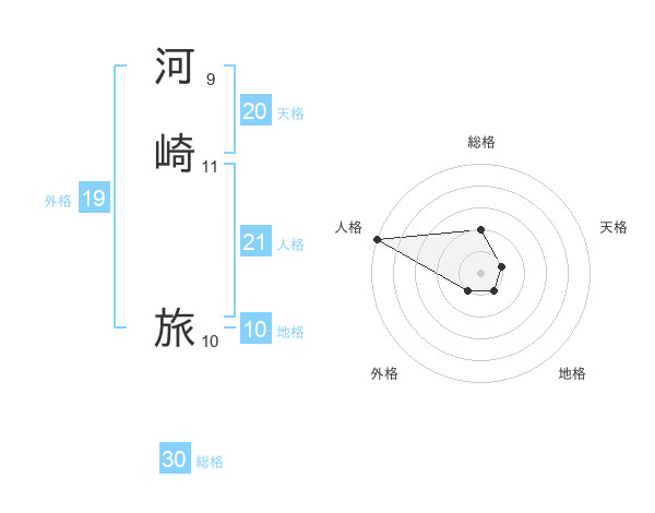 河崎 旅さんの総格は30画の2点!