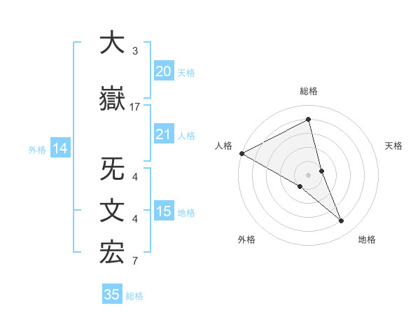 大嶽 旡文宏さんを姓名の画数から五運を鑑定