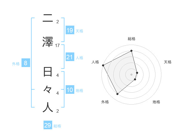 二澤 日々人さんの総格は29画の4点!