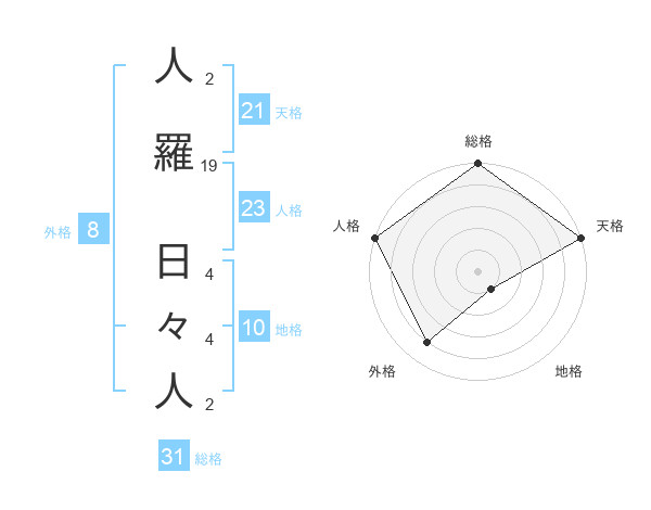 人羅 日々人さんの総格は31画の5点!