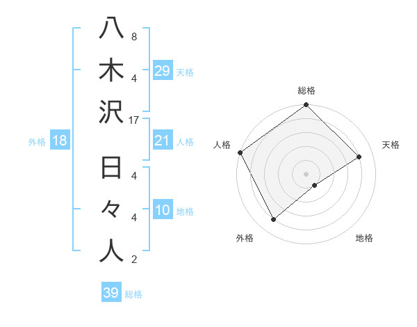 八木沢 日々人さんを姓名の画数から五運を鑑定