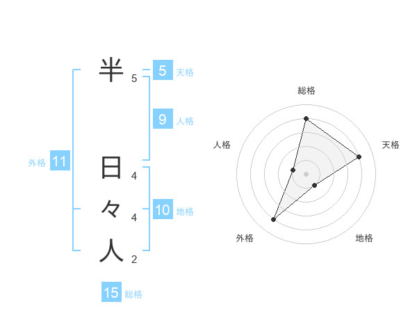 半 日々人さんの総格は15画の4点!