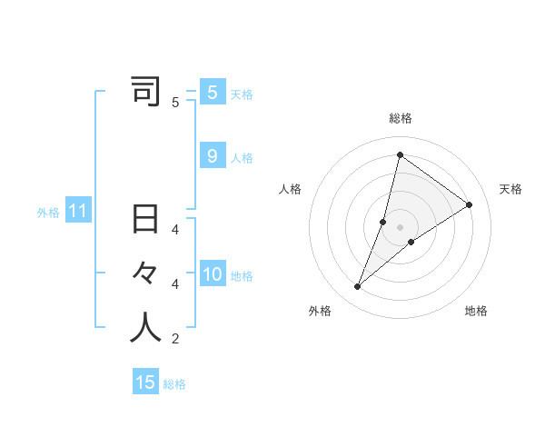 司 日々人さんの総格は15画の4点!