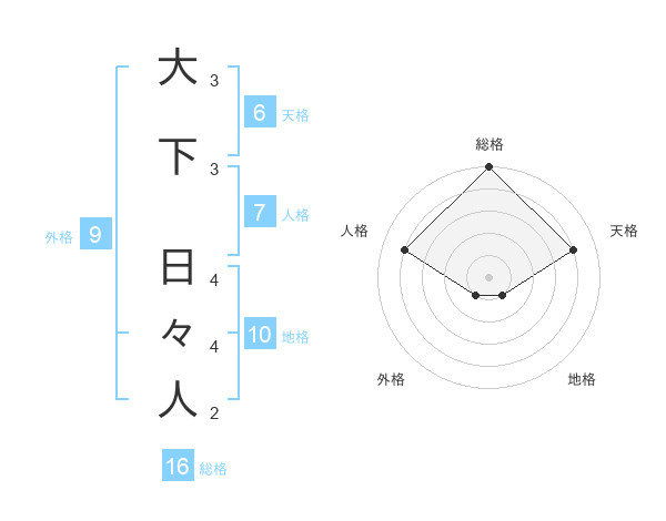 大下 日々人さんの総格は16画の5点!