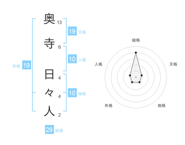 奥寺 日々人さんの総格は29画の4点!