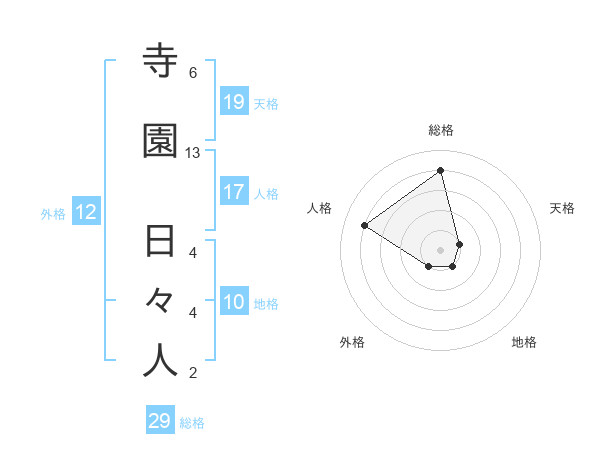 寺園 日々人さんの総格は29画の4点!