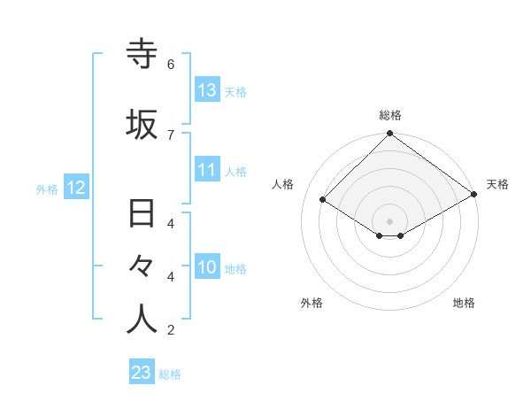 寺坂 日々人さんの天格は13画の5点!