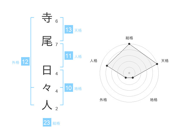 寺尾 日々人さんの天格は13画の5点!