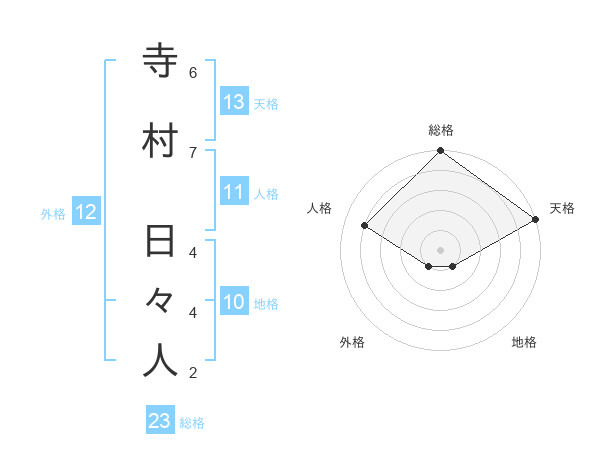 寺村 日々人さんの天格は13画の5点!