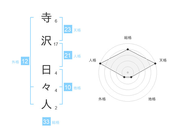 寺沢 日々人さんの天格は23画の5点!