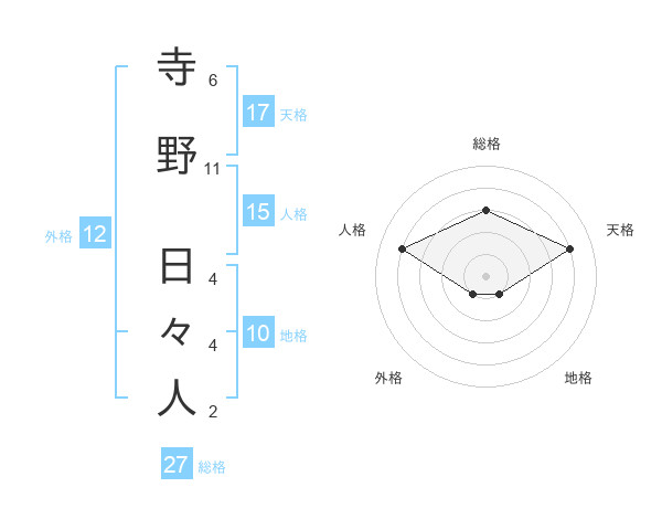 寺野 日々人さんを姓名の画数から五運を鑑定