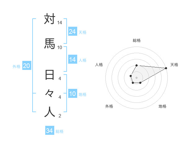 対馬 日々人さんの総格は34画の2点