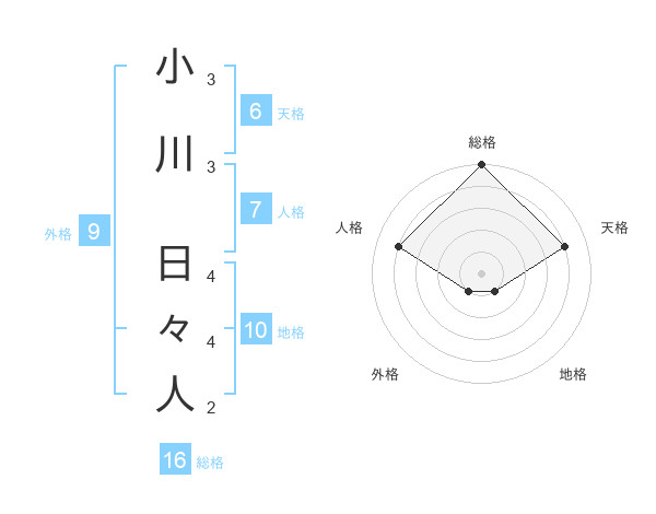小川 日々人さんの総格は16画の5点!